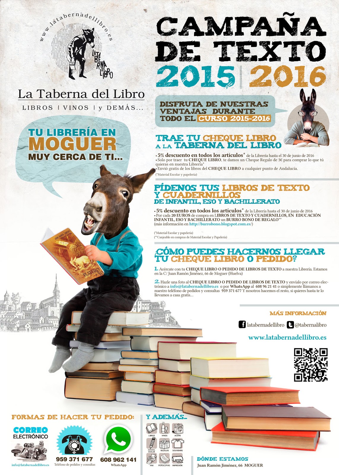 TRAE TU CHEQUE LIBRO A LA TABERNA DEL LIBRO y disfruta de nuestras ventajas durante todo el curso 2015-2016: